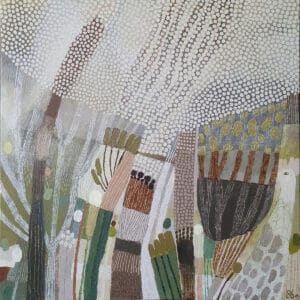 Färgerna i Susanna Sinivirras palett är jordnära och dämpade. I pop-up-utställningens målningar kan man urskilja de skiftande årstiderna – från vinterns svala ljus till sommarens blommande grönska. I Sinivirras arbeten återkommer också ofta olika fåglar; i dem finner hon ett uttryck för tillit till framtiden, livets kontinuitet och samtidigt närvaron i stunden, samt en viss typ av hoppfullhet och uthållighet.